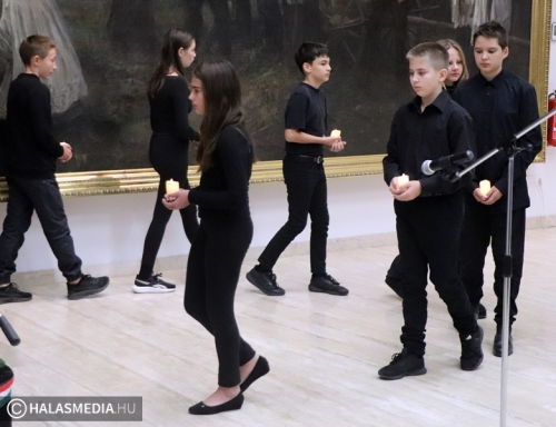A műsort idén a Fazekas Mihály Általános Iskola diákjai adták. A prózai részek, és a hozzájuk tökéletesen passzoló zenék, dalok tartalmassá tették a produkciót. A műsort követően a jelenlévők elhelyezték az emlékezés virágait, koszorúit az óriásfestmény, valamint a Sétáló utcai emléktábla előtt.